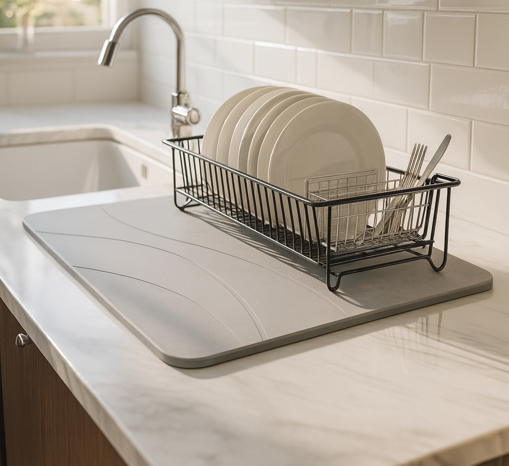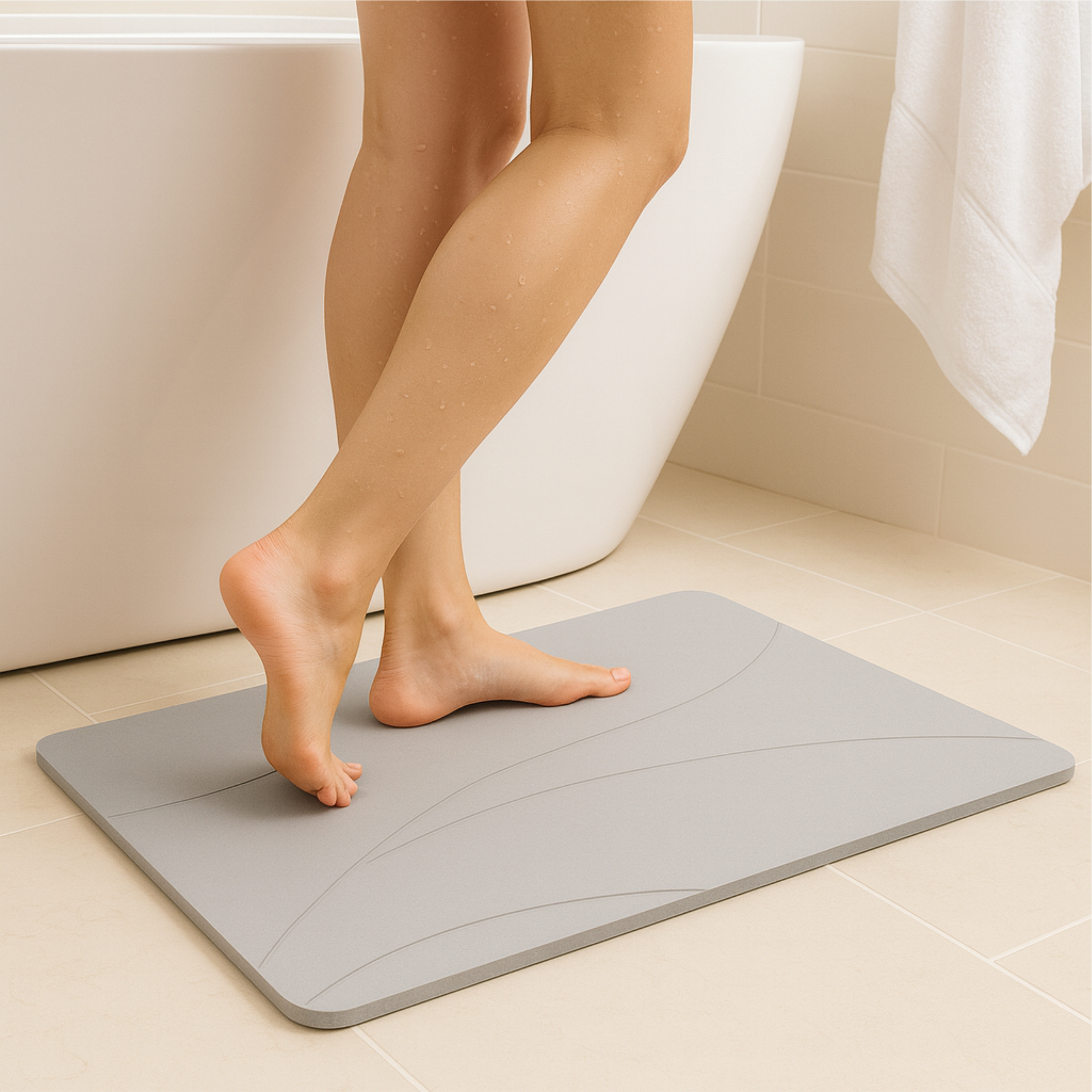 Alfombra de diatomita LARLUNA con base antideslizante y lija. Secado rápido tras la ducha. Diseño minimalista